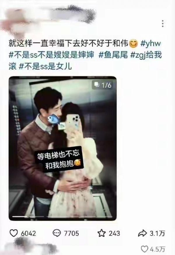 把自己的照片和于和伟的影视截图、日常照拼在一起,做成亲密合影,不仅自己当社交账号背景,还到处传播,搞得好像两人真有什么关系似的。